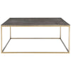 Uttermost's coffee tables combine premium quality materials with unique high-style design. With the advanced product engineering and packaging reinforcement, Uttermost maintains some of the lowest damage rates in the industry. Each product is designed, manufactured and packaged with shipping in mind. Inspired by modern styling, this coffee table features a beveled faux shagreen wrapped top in charcoal gray paired with a sleek stainless steel base finished in brushed brass.