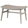 Cast aluminum ottoman in Gravel finish with flat woven acrylic rope in Stone or Bark.