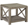 A wonderful complement to the most popular Burleigh Cocktail Tables. A striking Driftwood Grey finish accented with antiqued metal edge banding around the perimeter of the top. A slatted lower shelf adds style and functionality.