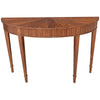 Robert Adam was a Scottish neoclassical architect and furniture designer during the 18th Century and one of the first to consider furniture fully worthy of an architect's attention. A demi-lune top, veneered with pau ferro, is placed over tapering posts.