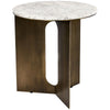 A luxe Carrara white marble top plays off a bold stainless steel base in an antique bronze finish to create the striking Pierre Side Table. Granite and marble are natural materials; variations in coloration, veining and texture are to be expected. Veins, smooth to the touch, are not defects, but rather natural imperfections that add to the uniqueness and charm of each piece.