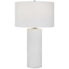 Uttermost's lamps combine premium quality materials with unique high-style design. With the advanced product engineering and packaging reinforcement, Uttermost maintains some of the lowest damage rates in the industry. Each product is designed, manufactured and packaged with shipping in mind. This cylinder ceramic table lamp features alternating linear ridges finished in a stylish satin white glaze with brushed nickel plated iron details. The hardback drum shade is covered in a white linen fabric.