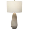 Uttermost's lamps combine premium quality materials with unique high-style design. With the advanced product engineering and packaging reinforcement, Uttermost maintains some of the lowest damage rates in the industry. Each product is designed, manufactured and packaged with shipping in mind. Simple yet stylish, this ceramic table lamp is finished in a crackled taupe-gray glaze with noticeable distressed details and antique brushed brass accents. The round hardback drum shade is a white linen fabric.