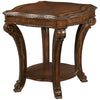 A perfect complement to either cocktail table in the Old World Collection, the sunburst veneered top and C-scroll legs of Old World Rectangular angular End Table match the features of the Rectangular angular cocktail table. The warm finish is a clear pomegranate shade that allows the natural beauty of the wood graining to shine through. Both the Old World Round End Table and the Old World Rectangular End Table finish at 27” in height so they can be used as a pair.