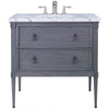 Cabinet style sink chest with one functional drawer. Made from Mindi wood with a wire brush finish and solid brass antiqued hardware. Statuario marble top.