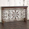 We're making "Rockefeller" the new name for beauty. Breathtaking scrolling ironwork, acanthus accents, a black fossil stone top and rich copper overtones magnificently merge together with this extraordinary console.
