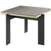 Sometimes the simplest of designs are the most intriguing. The carefully crafted brass frames a floating panel of artisan glass. The thoughtful, placement of the metal legs offers visual balance and interest at the perfect scale to sit beside a sofa.