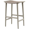 Cast aluminum barstool in Gravel finish with flat woven acrylic rope in Stone or Bark.