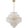 The Stella Chandelier commands attention with a unique glass finish, ghiaccio, that simulates the look of crackling ice. Each of its 98 octagonal tubes are crafted in crystal-colored Murano blown glass.