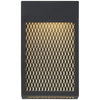 Golden mesh wiring encloses a top LED panel accented by black trim.