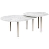 A sleek, eye-catching duo, the Alexia Bunching Cocktail Tables boast luxurious carrara white marble, stainless steel legs in an antique bronze finish and mid-century modern vibes.