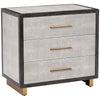 The clean lines of the Maia Bedside Chest are transformed into a statement piece thanks to the hand cast shagreen, vintage grey wood trim and antique brass detailing.