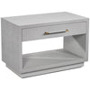 The clean lines of the Taylor Low Bedside Chest are transformed into a statement piece thanks to a surface of faux linen and metal pulls.