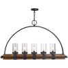 Uttermost's light fixtures combine premium quality materials with unique high-style design. With the advanced product engineering and packaging reinforcement, Uttermost maintains some of the lowest damage rates in the industry. Each product is designed, manufactured and packaged with shipping in mind. Heavy gauge real wood linear body, finished in a mid-tone, featuring clear seeded glass shades. A nod to industrial design is found in the iron wrapped frame, and top arch. The metal work is in a deep weathered bronze finish with a slight texture and black antiquing. Includes 5-100 watt max Edison sockets. Supplied with 20' wire and 7' chain for adjustable installation.