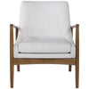 Uttermost's furniture combines premium quality materials with unique high-style design. With the advanced product engineering and packaging reinforcement, Uttermost maintains some of the lowest damage rates in the industry. Each product is designed, manufactured and packaged with shipping in mind. Scandinavian style accent chair featuring an exposed solid wood frame finished in a honey stain and covered in a subtle, taupe and white chevron polyester performance fabric. Seat height is 18".