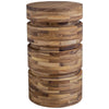 Uttermost's accent furniture combines premium quality materials with unique high-style design. With the advanced product engineering and packaging reinforcement, Uttermost maintains some of the lowest damage rates in the industry. Each product is designed, manufactured and packaged with shipping in mind. Showcasing the beauty of monochromatic natural tones, this drink table features solid acacia wood pieces with asymmetrically placed cutouts, creating a perfect landing spot for a glass or book.
