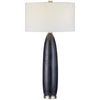 Uttermost's lamps combine premium quality materials with unique high-style design. With the advanced product engineering and packaging reinforcement, Uttermost maintains some of the lowest damage rates in the industry. Each product is designed, manufactured and packaged with shipping in mind. This handcrafted ceramic table lamp showcases an elevated look with a striped motif and a Prussian blue-gray glaze. Brushed nickel plated iron details accentuate the design. The hardback drum shade is covered in a white linen fabric.
