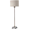 Uttermost's lamps combine premium quality materials with unique high-style design. With the advanced product engineering and packaging reinforcement, Uttermost maintains some of the lowest damage rates in the industry. Each product is designed, manufactured and packaged with shipping in mind. This simple, contemporary buffet lamp features clean lines and a versatile style. The iron base is finished in a plated antique brass, displayed on a thick crystal block and a cast iron foot. The round hardback drum shade is a beige linen fabric with light slubbing.