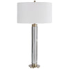 Uttermost's lamps combine premium quality materials with unique high-style design. With the advanced product engineering and packaging reinforcement, Uttermost maintains some of the lowest damage rates in the industry. Each product is designed, manufactured and packaged with shipping in mind. Contemporary in style, this cut crystal table lamp showcases clean lines, accented with lightly antiqued brass plated details. The round hardback drum shade is a white linen fabric.