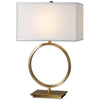 Uttermost's lamps combine premium quality materials with unique high-style design. With the advanced product engineering and packaging reinforcement, Uttermost maintains some of the lowest damage rates in the industry. Each product is designed, manufactured and packaged with shipping in mind. Hand forged metal finished in a plated brushed brass. The rectangle box shade is a white linen fabric.