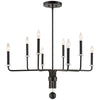 Uttermost's light fixtures combine premium quality materials with unique high-style design. With the advanced product engineering and packaging reinforcement, Uttermost maintains some of the lowest damage rates in the industry. Each product is designed, manufactured and packaged with shipping in mind. Modern & sleek softly bent lines give this 8 lt. Chandelier a dramatic feel, finished in a deep matte black with chic white marble disc bobeches. With 8-60 watt max, candelabra sockets. Supplied with 15' wire, and 3-12" stems & 1-6" stem for adjustable installation.
