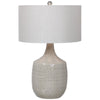 Uttermost's lamps combine premium quality materials with unique high-style design. With the advanced product engineering and packaging reinforcement, Uttermost maintains some of the lowest damage rates in the industry. Each product is designed, manufactured and packaged with shipping in mind. This ceramic base keeps it simple in shape, yet upscale with its fashionable pattern that's finished in a distressed light gray glaze, paired with brushed nickel plated accents. The hardback drum shade is light gray linen fabric.