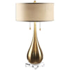 Uttermost's lamps combine premium quality materials with unique high-style design. With the advanced product engineering and packaging reinforcement, Uttermost maintains some of the lowest damage rates in the industry. Each product is designed, manufactured and packaged with shipping in mind. Curved metal base finished in a plated brushed brass accented with a crystal foot. The round hardback drum shade is a rust beige linen fabric.