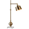 Uttermost's lamps combine premium quality materials with unique high-style design. With the advanced product engineering and packaging reinforcement, Uttermost maintains some of the lowest damage rates in the industry. Each product is designed, manufactured and packaged with shipping in mind. Brushed brass plated metal accented with a thick crystal foot. The shade pivots up and down and lamp is also adjustable in height.