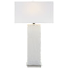 Uttermost's lamps combine premium quality materials with unique high-style design. With the advanced product engineering and packaging reinforcement, Uttermost maintains some of the lowest damage rates in the industry. Each product is designed, manufactured and packaged with shipping in mind. Stylish and sophisticated, this table lamp is executed in a rich carved ivory ricestone that accurately replicates the look of thassos marble and is accented by brushed nickel finished iron details. A rectangle hardback shade in white linen complements the design.