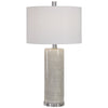 Uttermost's lamps combine premium quality materials with unique high-style design. With the advanced product engineering and packaging reinforcement, Uttermost maintains some of the lowest damage rates in the industry. Each product is designed, manufactured and packaged with shipping in mind. Modern in design, this ceramic table lamp showcases a neutral beige glaze with an abstract gray drip pattern, paired with elegant crystal details and polished nickel plated accents. The hardback drum shade is a white linen fabric.