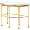 An organic interpretation of French modernist furniture, the Cristal Collection features thick acrylic table tops that bend toward and away from an unmarked center. Gold leafed iron creates the glitter and glimmer.