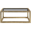 A lovely low table with a metal textured frame that is fitted with an inset tinted glass top.