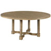 A round top veneered with quarter sawn oak rests over four multi-ringed turned posts that are joined by a low serpentine stretcher.