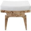 The crisp, tailored white linen cushion and distinctive burl wood veneer on the modernist, rectangular Fergie stool are a perfect complement to your luxe style.