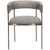 Paying contemporary homage to an art moderne silhouette, the Ryland Dining Chair boasts faux leather in distressed paired with a metal frame.