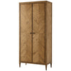 Double oak mirrored herringbone parquetry doors, the Nova Wardrobe is built with attention and care. Adorned with our elegant Verde Bronze knobs and resting upon a tapered leg for added support. Seen here in Dawn Finish.