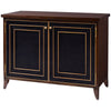 A sexy cabinet reminiscent of the roaring 1920's, the Mannix is decked out with eglomise glass and gilt painted lines. With a laugh at prohibition, this cabinet interior is outfitted for liquor and glass storage.