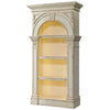 A country house white painted open bookcase, the cavetto cornice above an architectural arch and keystone with column supports enclosing an open interior with LED lighting and a fixed shelf above two adjustable shelves. Inspired by a George III original. Designed to adjust to bunching with adjustable cornice and base.