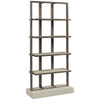A unique, modern bookcase for display or books. The form is fitted with brushed silver metal framing for four shelves that are veneered in quartered ash.