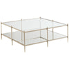 Worthy of a second look, the beauty of this cocktail table will surely prompt a double take. Its classic square shape is ideal for anchoring your conversation area while the exquisite metal frame finished in Neutral Metallic adds an element of fashion to the room. A glass top reveals the beautiful design below and is perfect for styling with your favorite design books and treasures. Generously sized and finished to perfection, this refreshingly updated table is impressive from every angle.