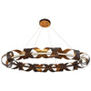 The Banderia large chandelier contains beautiful hand forged, two toned bronze ribbons which drape around a band of LED lighting. Inner ribbons contain gold leaf finishes for a gorgeous warm glow. These two natural metals create a sense of elegance and modern edginess in a captivating presentation. Bronze ribbons draped around a band of LED light.