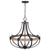 Uttermost's light fixtures combine premium quality materials with unique high-style design. With the advanced product engineering and packaging reinforcement, Uttermost maintains some of the lowest damage rates in the industry. Each product is designed, manufactured and packaged with shipping in mind. Updated empire shaped 8 lt. Chandelier with a French influence, featuring a ring of natural oak a bronze metal frame. With 8-60 watt max, candelabra sockets and includes 20' wire and 7' chain for adjustable installation.