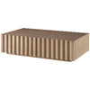 White oak veneer serpentine side cocktail table with Honed Carrara marble top. Inset plinth base.