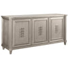 It's all in the details. The beautifully curated detailing of the Deco-inspired Morrissey Collection from A.R.T. Furniture proves once again that less is elegantly more. From jewelry-like custom hardware to the cedar lining of an upholstered end-of-bed storage bench, from the soft glow of silver to the practicality of a hidden USB port, the collection exceeds expectations with a kind of glam that is both striking and highly livable. The three-door credenza brings together traditional fluted corner pilasters, mitered moldings and an inset stone top with the dramatic pop of custom metal filigree hardware. The credenzas three cabinets have adjustable shelves. Available in Thistle, a rich dark finish that shows off the beautiful grain of the wood, and in Smoke, a warm semi-transparent gray stain.