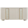 The Harmony Credenza mirrors the perfect symmetry of the natural world. Its design is accentuated with selenite and encased in brass.