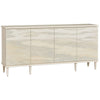 This long narrow credenza answers the needs of the dining room or the entertainment area. The four door case has a tray drawer and adjustable shelves providing ample storage for either purpose. The case is mounted on a six-legged wood base that provides structural integrity and provides adjustable levelers. Available in any custom finish or combination of finishes.