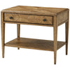 Nova’s Rectangular Side Table exhibits an original oak parquetry patterned top and bottom tier, highlighted by joined with a rustic tapered oak leg.