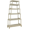 Five graduating shelves are veneers with ash that rest over a base with tapering legs. Crafted from hardwood solids and ash veneer.