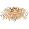 Intricate gold metal wire frame adorned by delicately hand strung glass wafers.