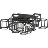 Inspired by shadow box wall art, multiple cubes outlined by plated-gold frames are positioned in dimensional patterns and illuminated by LED panels to create a dramatic visual effect.